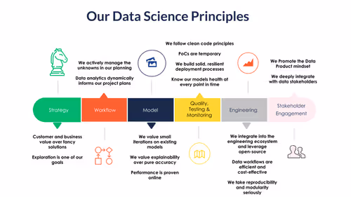 As our Data Products organization grew in 2019, we felt we had reached a critical mass to better define who we wanted to be and how we wanted to work in 2020 and beyond. Over time, our standards and professionalism had grown and it became important to align as a team, consisting of data scientists and backend engineers who are working in different mission teams. We were inspired by popular concepts like the definition of awesome coined by Spotify and our own engineering principles.