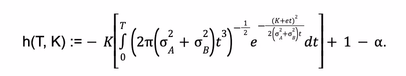 We address this challenge by employing a probabilistic approach to determine whether to halt the experiment. Specifically, we decide to stop the experiment by flipping a coin, with the probability of stopping being contingent upon the likelihood of intersecting the futility function. This likelihood is calculated based on the distance of Δ from the futility threshold at the last and current check-ins, as well as the sample size between these two points. The probability of crossing is given by the formula: