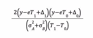 In this formula, y represents the intercept, T0 and T1 denote the check-in points, and Δ0 and Δ1 are the corresponding values of Δ at these points.