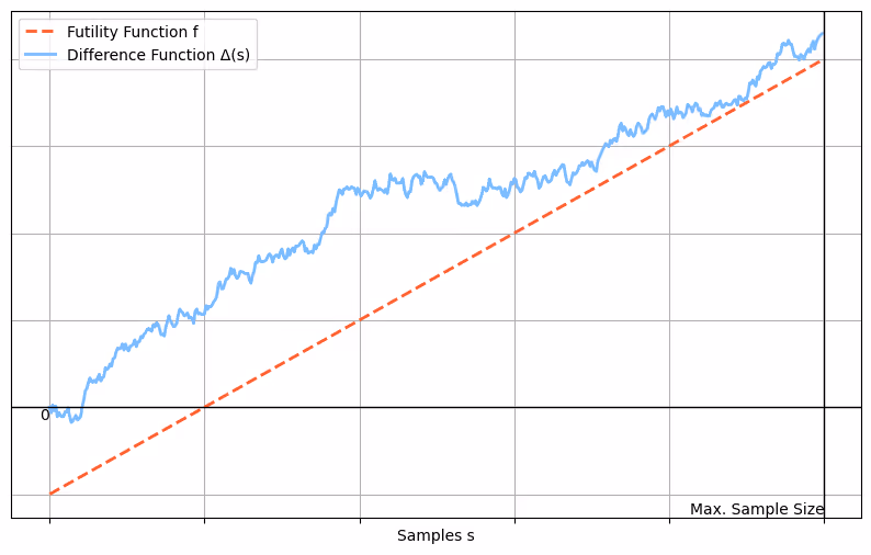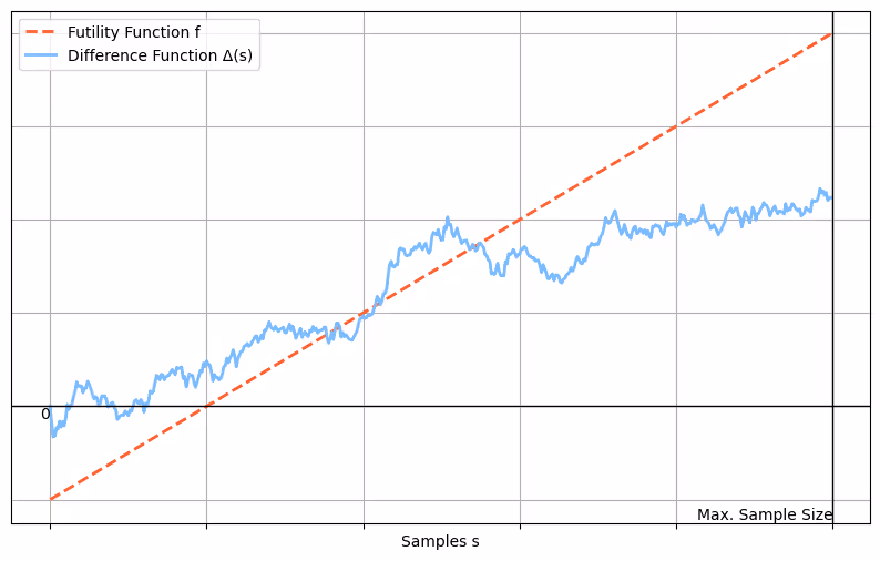 When evaluating a new batch, Basemath will reach one of three conclusions. If the total samples haven’t exceeded the maximum, the data may be too ambiguous for a final decision, and more is needed. Or it may decide on the null hypothesis: the treatment is no better than the control and cannot be rejected. Once reaching the maximum without experiencing the previous two events, Basemath will reject the null, concluding the treatment significantly outperforms the control.