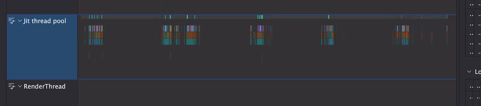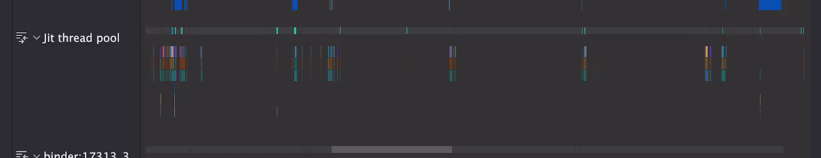 This is a JIT activity thread that shows the colored bars representing the tasks being executed, i.e., the Just-in-Time compiler compiling the interpreted code.