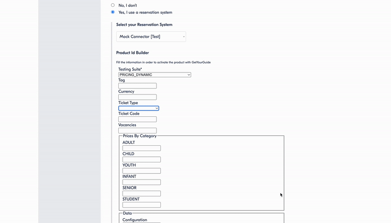 We needed to generate a product ID form based on the user's selection from a reservation system dropdown. The form rendered was based on the JSON-formatted dynamic form data, with different types of fields, received from the backend API for that reservation system. The data entered in the form had to be again combined as a JSON string to be stored in the database.