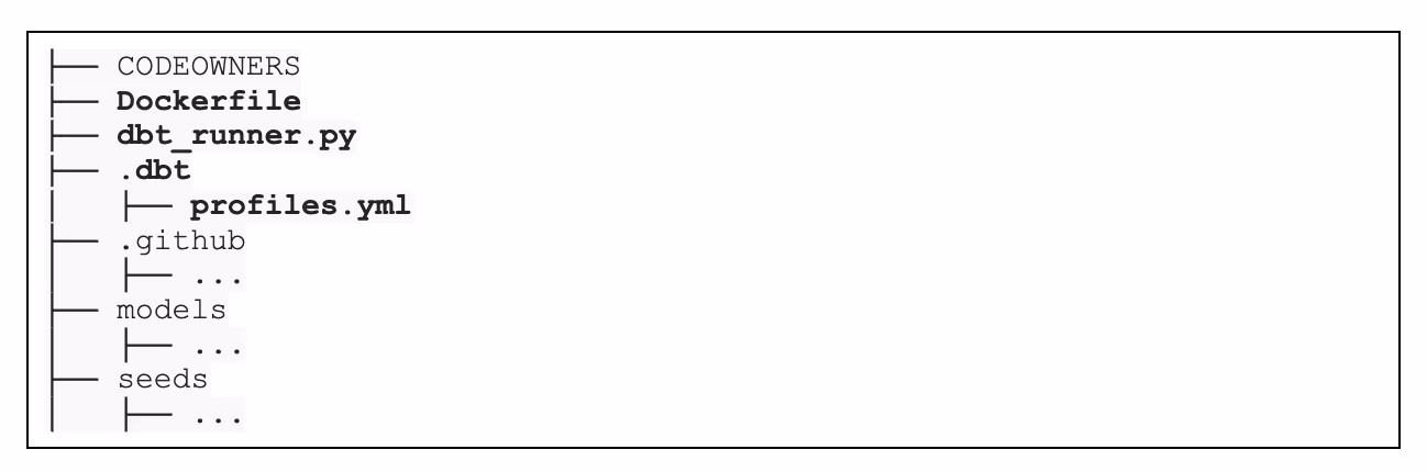 - a script to handle dbt arguments and execute them- Adapted from Leo Schick’s work, this python script, named dbt_runner.py, is placed at the root level of the dbt project. It performs the following actions:
