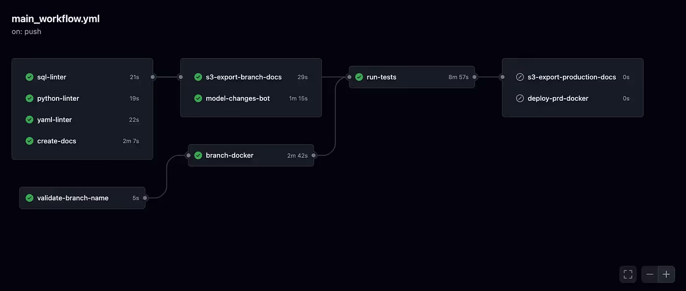 - Generate artifacts early- the pipeline begins by generating dbt artifacts with dbt docs generate, to save time for subsequent actions like uploading to S3.