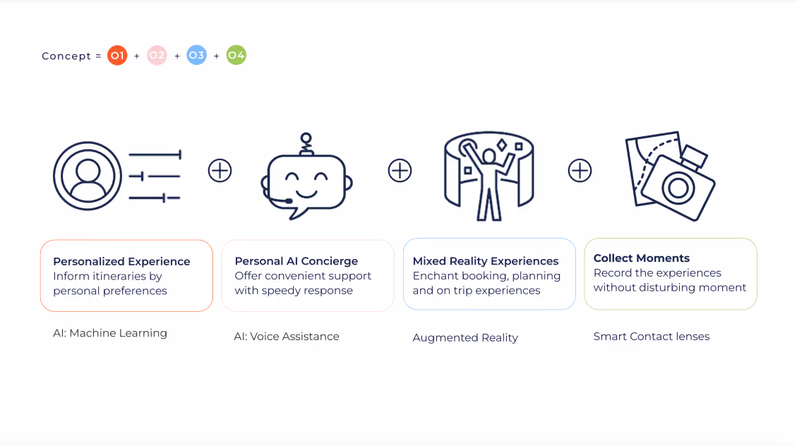 Devised by Ekim Öztürk and Chaya Chantharamethikun, PAC – or Personal AI Concierge – builds on smart contact lens technology and AI voice assistance to deliver a fully personalized service to GetYourGuide customers at every step of their journey. For example, when planning their trip, customers can engage ‘booking mode’ to see bespoke itinerary suggestions and interactive videos. A multifunctional ‘on trip mode’ combines immersive navigation, memory capture, and even translation. On their return, travelers can relive their adventures through a photo archive. Thinking further ahead still, the students envisage developing a night mode for PAC, as well as gamification features for a more rewarding customer journey.