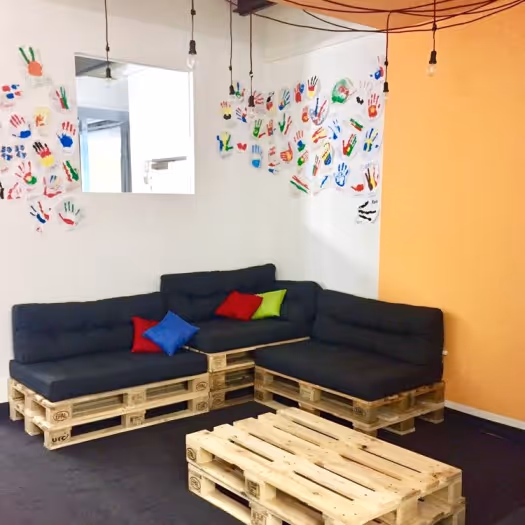 The area with the new couches built out of Euro-pallets is really nice and definitely fits the Kreuzberg style pretty well! - Please see below picture of said pallet space.