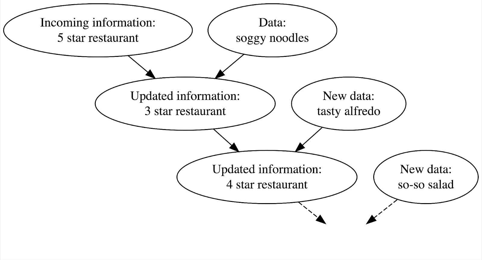 The beauty of this approach is how it naturally represents uncertainty through probability distributions, which narrow as we gather more data. You can think of how each data point contributes to our understanding of the activity’s performance the same way you refine your knowledge about a restaurant when going for dinner. You look it up on Google Maps, look at the reviews, then read one review, read another review, and the more data you have, the more you refine the picture you have of the restaurant in your head.