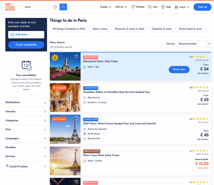 One of the important sources of online traffic for GetYourGuide are ads showing a specific activity offered (through different channels like search engines, social media, external blog posts, etc). The users coming from those ads land on a web page that shows the specific activity on top, called elevated activity, along with other activities in the same city.