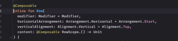 If you take a closer look at the code sample mentioned above, you'll be wondering if the Nearest restartable function is ContactRow and not Row because Row is an inline Composable function. Functions like function Row, Column, or Box are neither restartable nor skippable as they are inline functions.