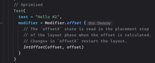Now, changing the Offset of Text is not causing recompositions because the Composition phase can be left out.