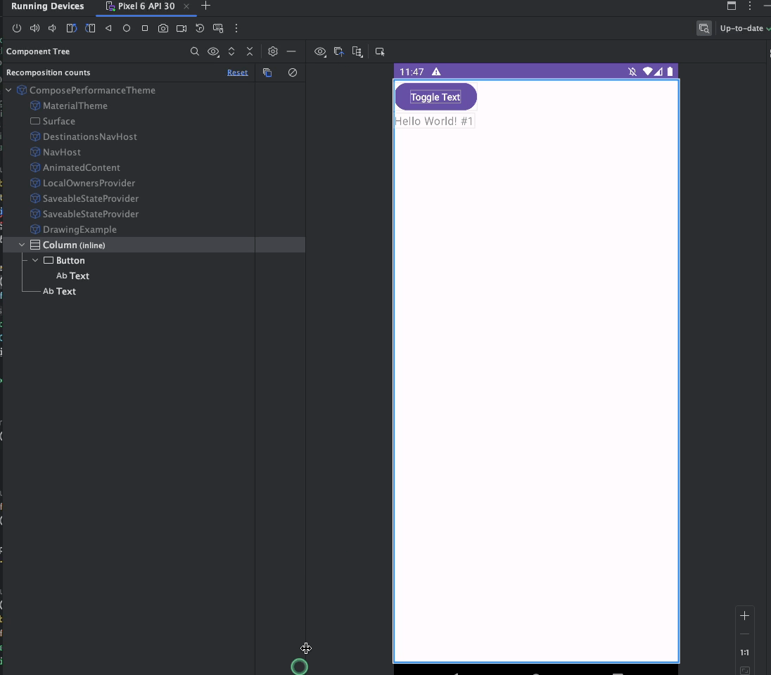 Layout Inspector: Layout inspector is a tool in Android Studio, which is quite useful for counting/tracking recomposition and skipped recompositions.