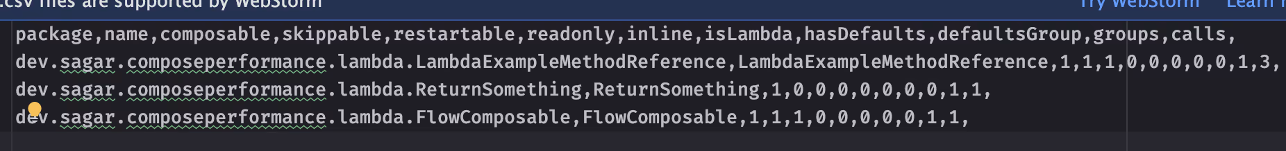 From the above output, our primary focus should be on <modulename>-classes.txt and <modulename>-composables.txt. If you carefully examine the output from these two files, you’ll come across terms like stable, unstable, restartable, skippable, @static, @dynamic, and runtime stability. Don't worry if it seems overwhelming at first. We'll go through these terms, ensuring you understand their true meaning. Let’s start with the <modulename>-classes.txt. Bear with me; we'll move on to practical examples once you grasp these concepts.