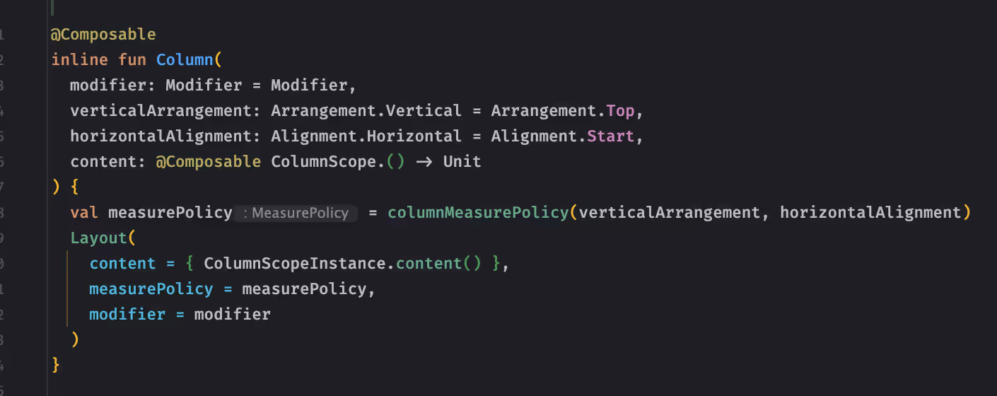 This provides a scope for initiating recompositions. Most composables are restartable, except inline ones, such as Column and Row Composable.