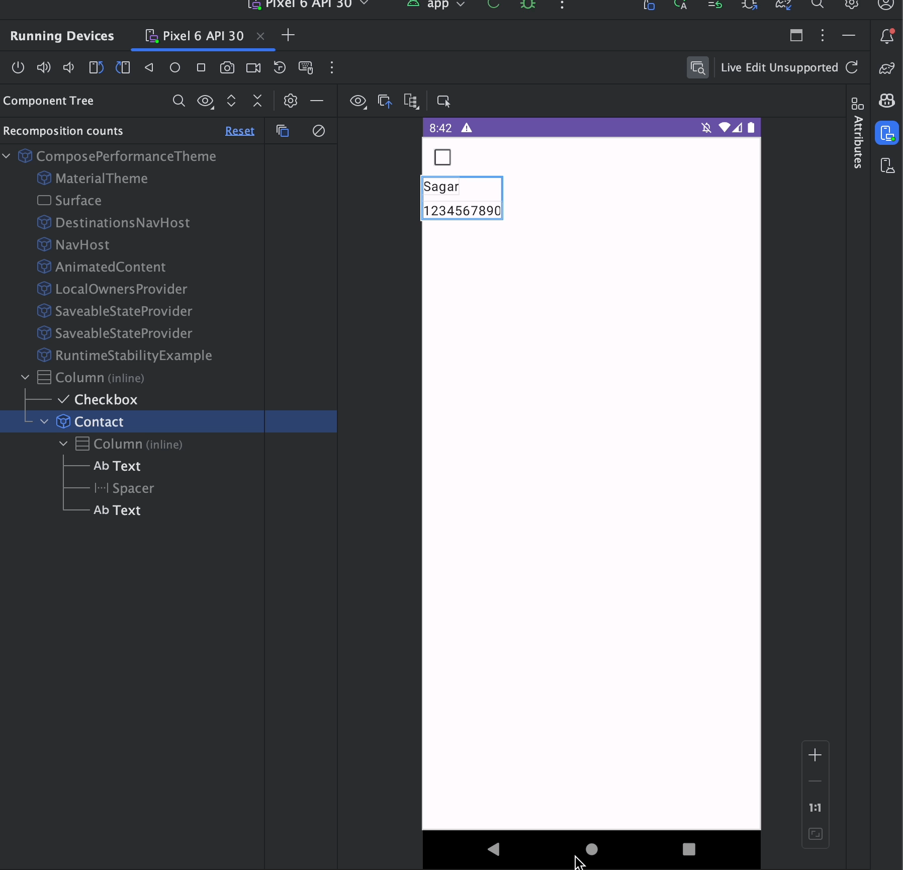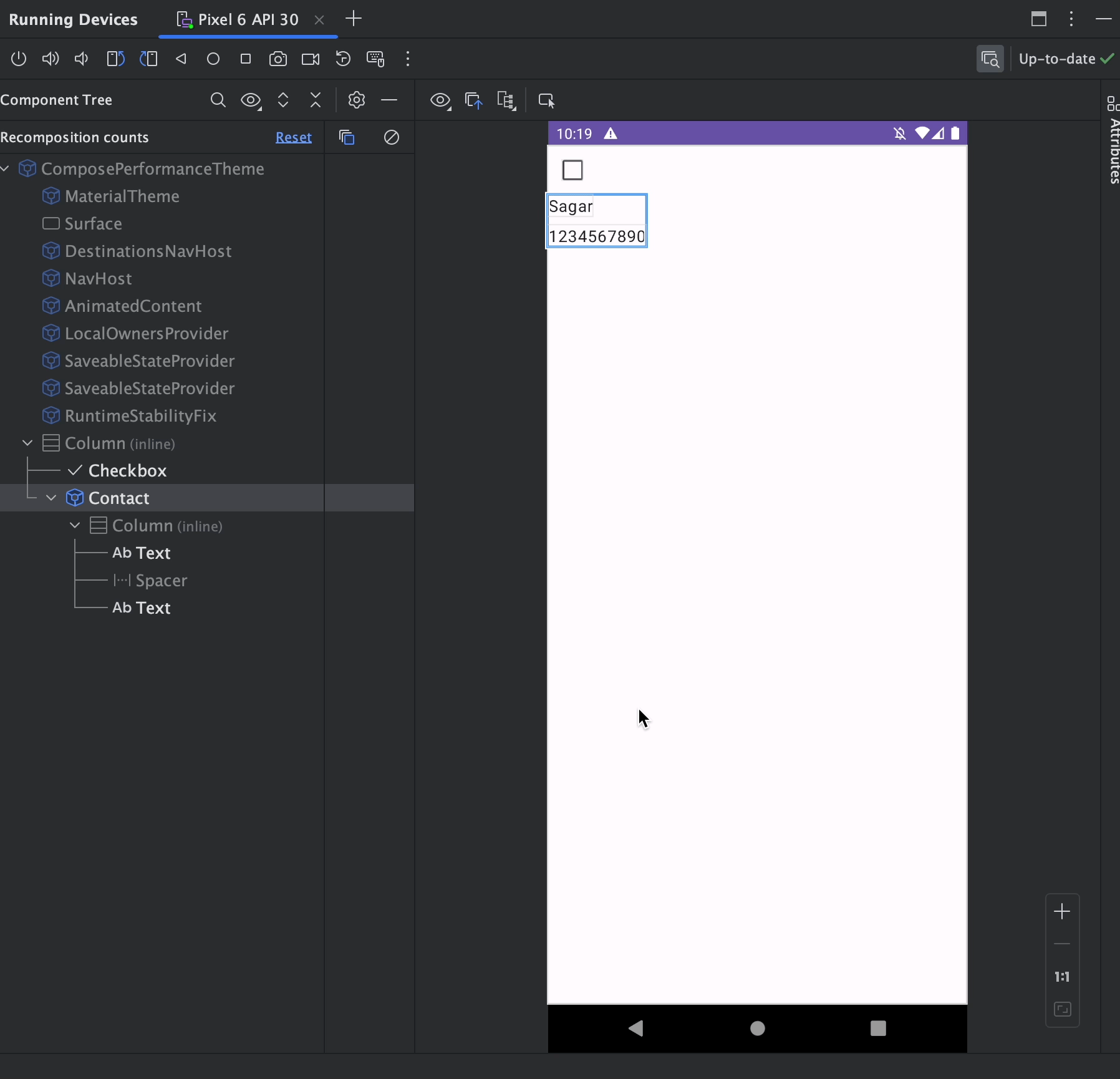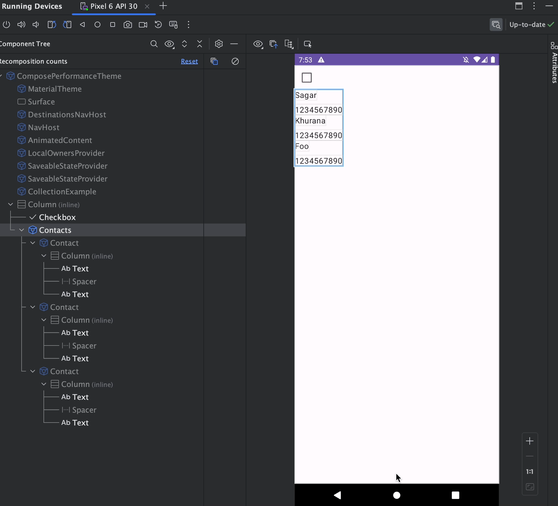 Looks all good, right? But no. Why, on Click of Checkbox, its recomposing is ContactModule(...) composable as ContactInfo is not changed at all 🤔