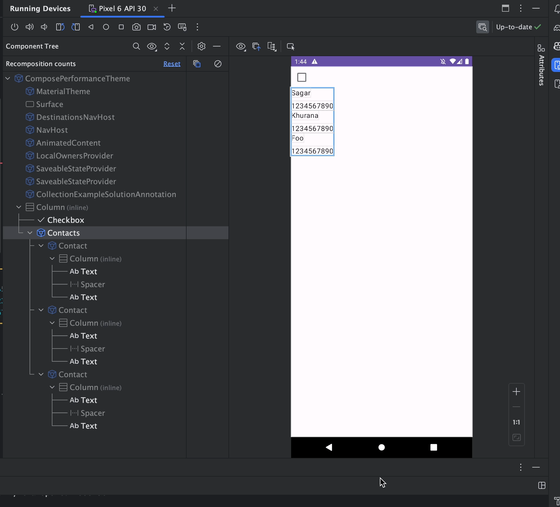 The above samples are in this Github Repo - hellosagar/ComposePerformance. Special thanks to Sagar Viradya, Vaibhav Jaiswal, Piyush Pradeepkumar, Shreyas Patil, Kasem SM, Lavina Dhingana, Alireza, Milan Jovic, Benedict Pregler and Volodymyr Machekhin for reviewing the article.