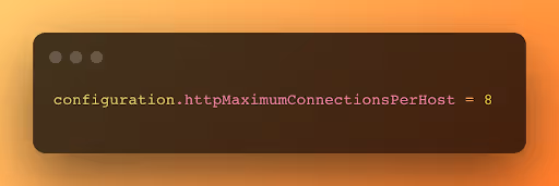 If we are using HTTP/2, the maximum number of simultaneous connections is handled differently, since stream multiplexing is used, meaning just one TCP connection is used, but multiple streams can use it. The default value for iOS is 100, but services normally offer more, and even if it offered less we wouldn't even be close to the limit (I hope). In our case we just made sure that we are using HTTP/2 for all services, and the number of simultaneous connections/streams accepted by our services support our use cases.