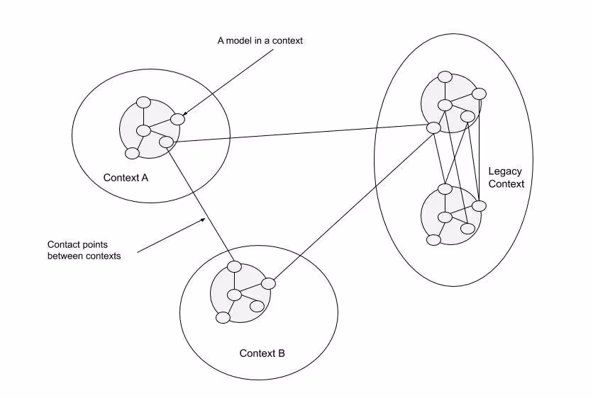 To visualize how different bounded context interact, DDD has a general-purpose technique/tool called context mapping. When creating a context map, it's possible to identify potential logical boundaries in the system. Strategic patterns work by specifically integrating those different bounded contexts.