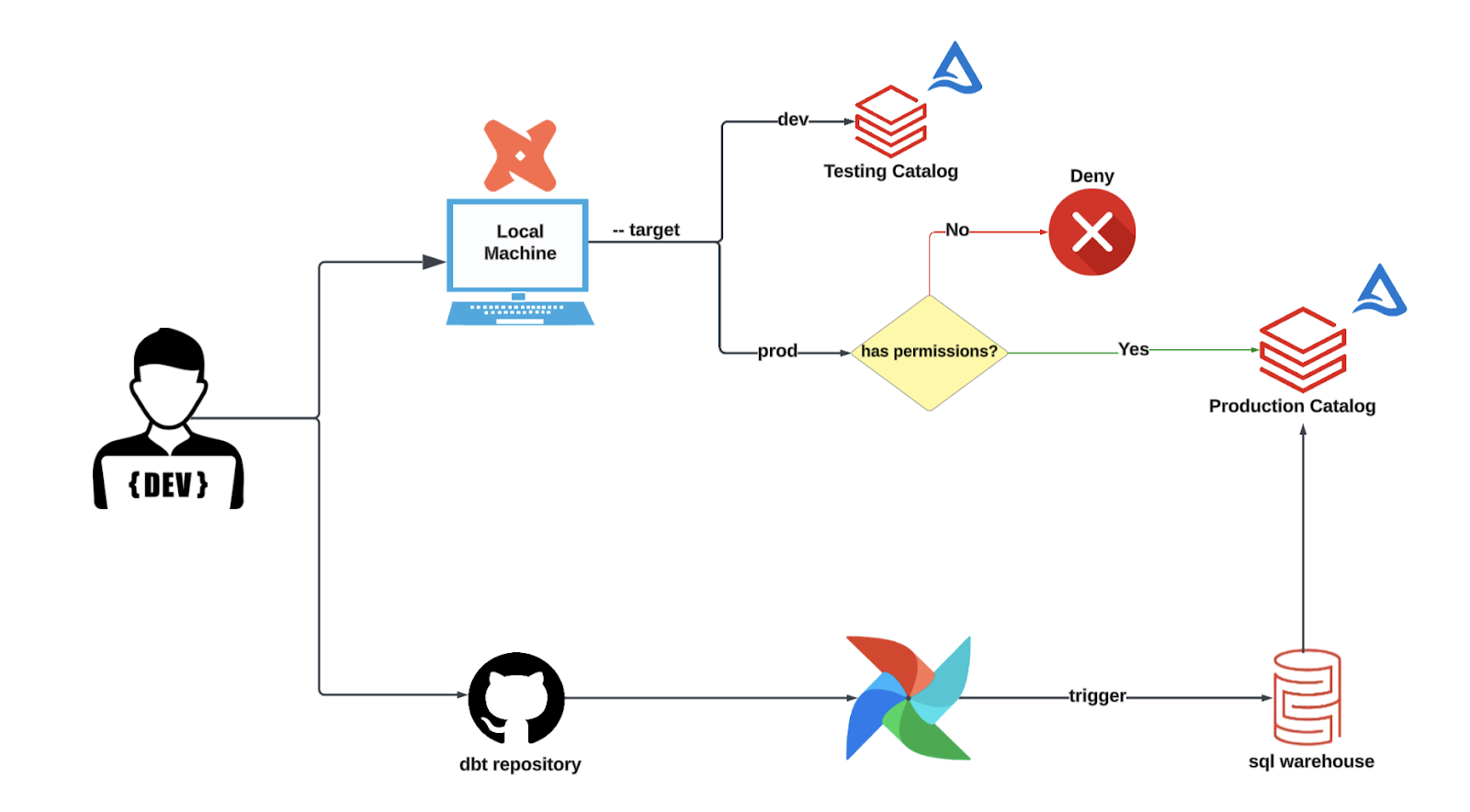 Implementing dbt should empower developers by giving them complete control over their data transformation models through simple CLI commands while maintaining strong data access control to prevent unauthorized schema or data changes. Additionally, when transformations run in a testing environment, automatic data sampling mechanisms ensure minimal impact on the data warehouse.