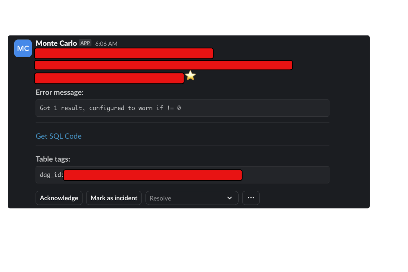 In addition, integrating Monte Carlo into our dbt and Airflow pipeline has significantly enhanced our data observability and reliability. After executing our dbt jobs through Airflow, we utilize the generated run_results.json file to feed critical information directly to Monte Carlo. This integration allows us to automatically flag dbt test failures and model errors as Monte Carlo incidents, streamlining our troubleshooting processes and enabling faster resolution of data issues. Moreover, this setup extends our observability capabilities by integrating seamlessly with Slack, ensuring real-time notifications. Whenever Monte Carlo detects anomalies or errors based on dbt run results, it immediately sends alerts directly to our Slack channels.