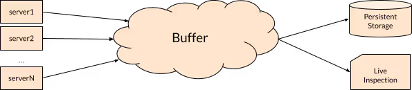 We planned a pipeline which would have all our servers at one end and persistent storage plus live inspection at the other end. In the middle we wanted a service that could temporarily store the data and act as a buffer between the producing and consuming ends.
