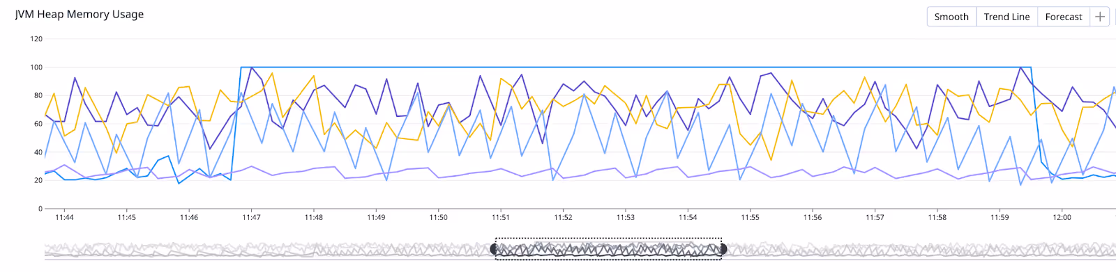 - GC Pressure: If the JVM struggles to free memory quickly enough, it may cause intermittent spikes in heap utilization.