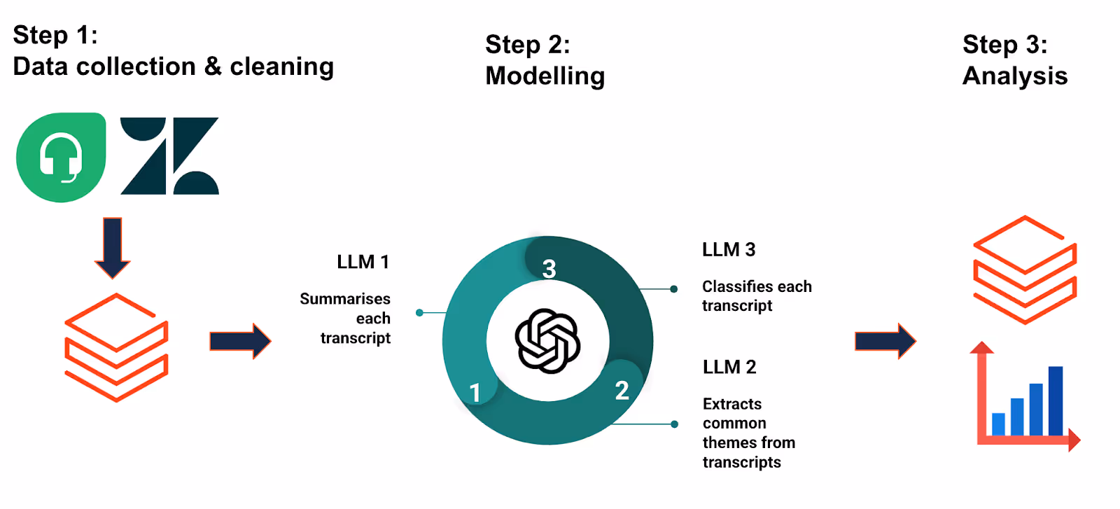 We began by gathering all conversations between suppliers and potential customers, focusing specifically on those related to multi-day tours. Using a large language model (LLM) via the OpenAI api, we simplified each conversation. These simplified dialogues were then processed through another LLM to extract common topics and themes. Finally, a third LLM classified each conversation according to the identified themes. This systematic approach enabled us to conduct a straightforward data analysis task, resulting in a prioritized list of insights.