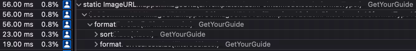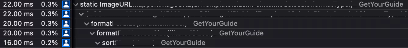 This function is the one used to find the most optimal remote image size. We use a series of IDs and try to find the one that best fits each image frame. The problem with this function was not that we needed to run through the whole list of IDs to find the most suitable one, it was that we were recreating and sorting the list every single time we asked for an ID. In an app where we may be able to show thousands of images in a single session, this is computational power being thrown away. By simply changing the logic and caching the list after it's first sorted, this is the result we achieved:
