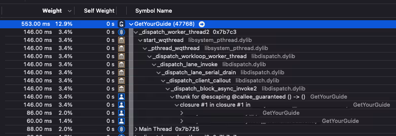 But what about the tasks that need to run in the Main thread, but are expensive? Well we can also use Instruments to find them and try to optimize them. This is how we found another app-wide function that was taking much more time than needed to run, but could not be dispatched in another queue because of how it was being specifically used.