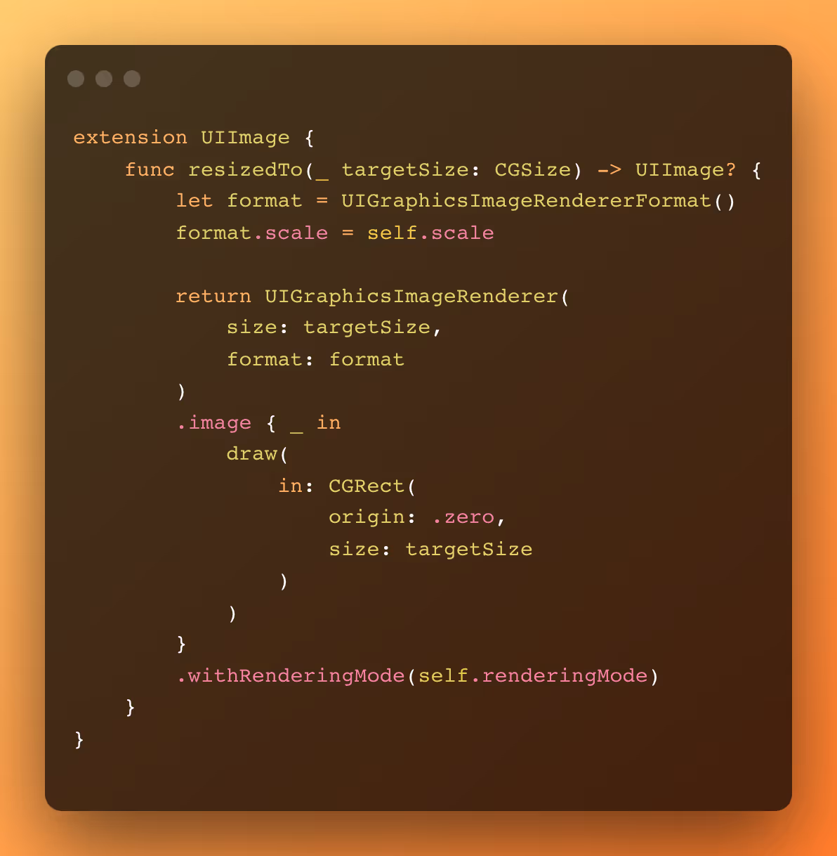 Note the approach above is using an in-memory image, meaning the aforementioned footprint is being used. If we need to downsample an image without first increasing the memory footprint, we should use other APIs like ImageIO, which will handle the resource before transforming it into a UIImage.