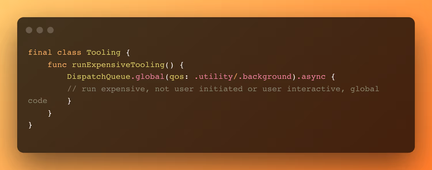 The Grand Central Dispatch is a powerful tool that although sometimes overlooked or underused can help increase the app performance by making (better) use of multithreading. It helps us instruct the system how we want to run specific actions/blocks of code, either by using semantic Quality of Service classes or being directly controlled by the developers when building custom queues, while using a simple DSL to do so.