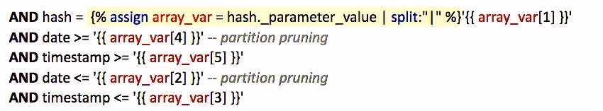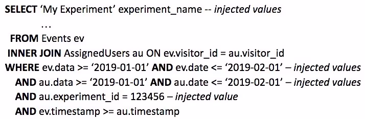 Let’s see how this applies to our Experiments use case. If we apply the described techniques, we will inject hard-coded values into our generated query to get something like: