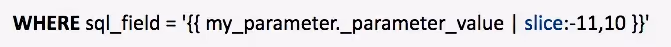 In the above example, “slice” would extract the last 10 characters from a parameter value. Though it isn’t obvious from the code, it’s important to note that Liquid also counts single quotes. If, in the above example, the second argument was 11, the return value would look something like “012345689’”. This would be the same if you extracted a substring from the start of the string — character 0 would be the single quote.
